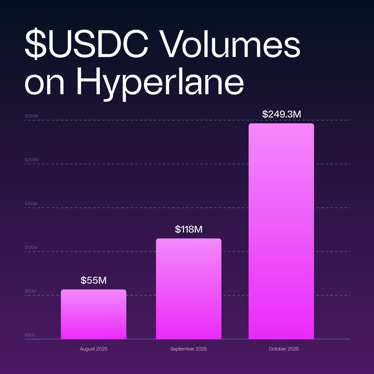 USDC volumes on Hyperlane have grown 350%+ since August, with the launch of Hyperlane Warp Routes 2.0.